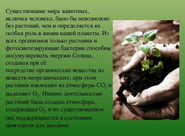 Кроме того, растения играют важную роль в поддержании экологического баланса на Земле. Они являются биологическими фильтрами, очищающими воздух и почву от вредных веществ, а также участвуют в цикле воды и удерживают почву от эрозии.