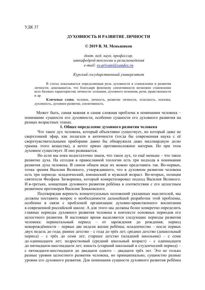 Понимание сущности духовного развития